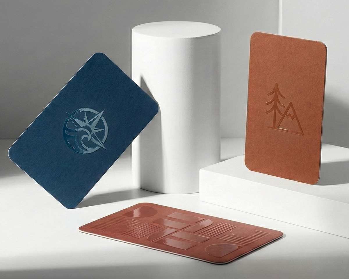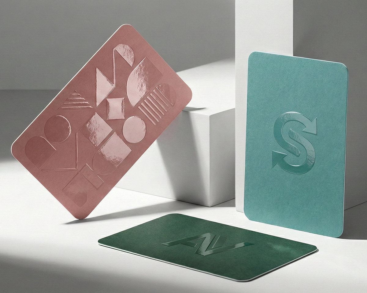 Raised Foil delivers a dimensional metallic effect that enhances logos, names, and key design elements with brilliance and elegance.