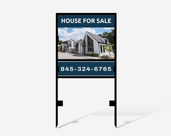 Our real estate frames include a sturdy black powder-coated steel frame and a 4mm white coroplast panel. The graphics are double-sided and come in one size: 24” x 18”. You can update them whenever needed by ordering separately.