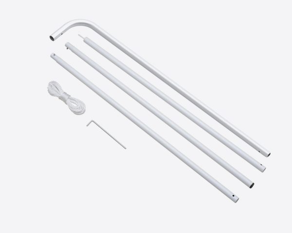 The product is quick to assemble. Position the pole set on the chosen base, then connect the poles in order. Slide the flag onto the pole and secure it at the bottom.